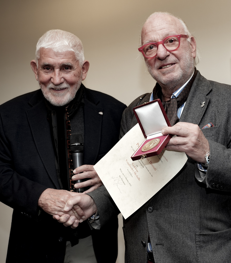 - Prof. Kristian Bissuti, der Toppressefotograf in Österreich erhielt für seine Verdienste die GOLDENE VOIGTLÄNDERMEDAILLE. Prof. Dr. Werner Sobotka, der Präsident der PhG hielt die Laudatio und überreichte die Medaille.
