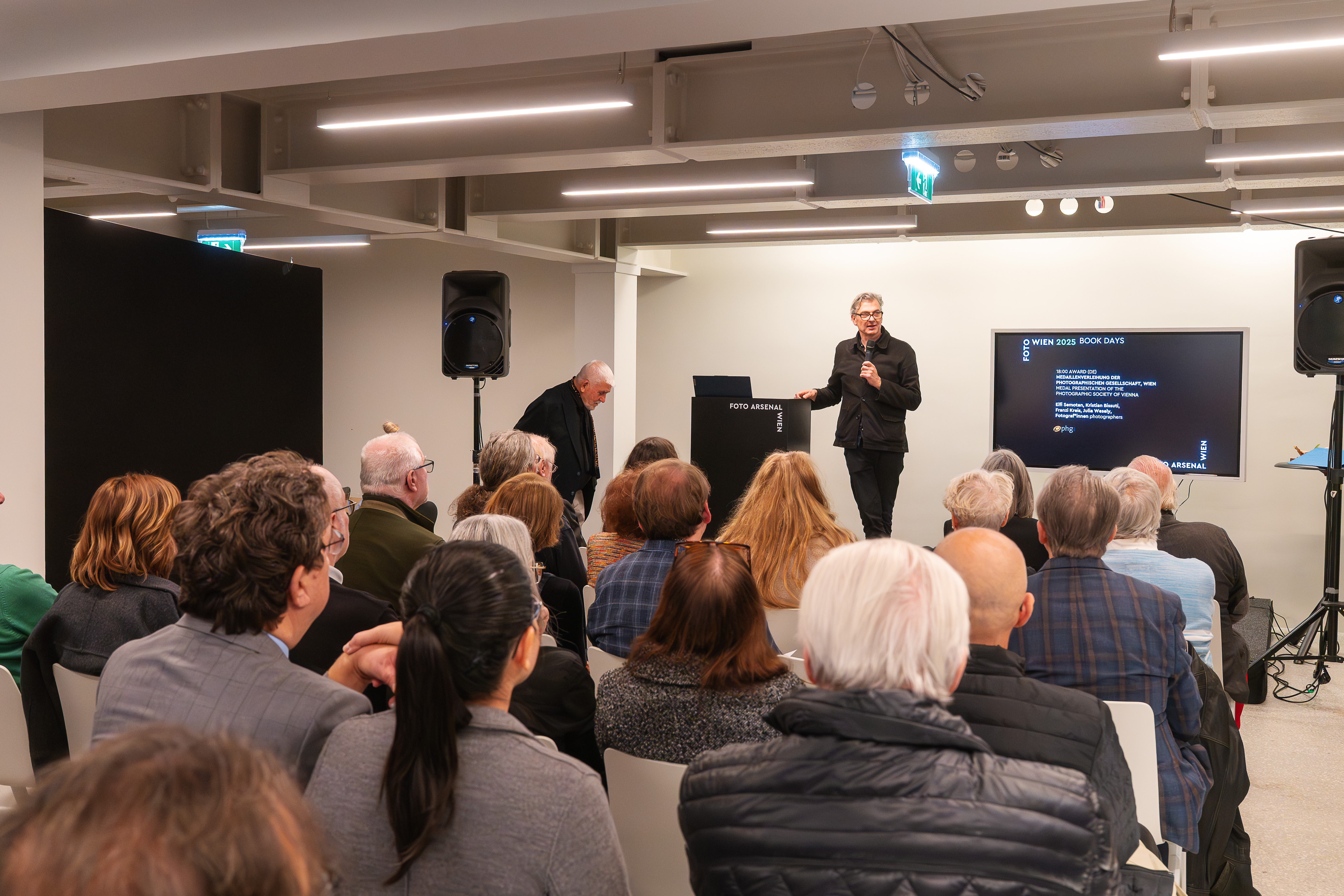 Der Direktor des Foto Arsenal Wien, Felix Hoffmann begrüßte die Teilnehmer der Ehrungen am Arsenal. Die weitere Moderation führte Prof. Dr. Werner Sobotka.